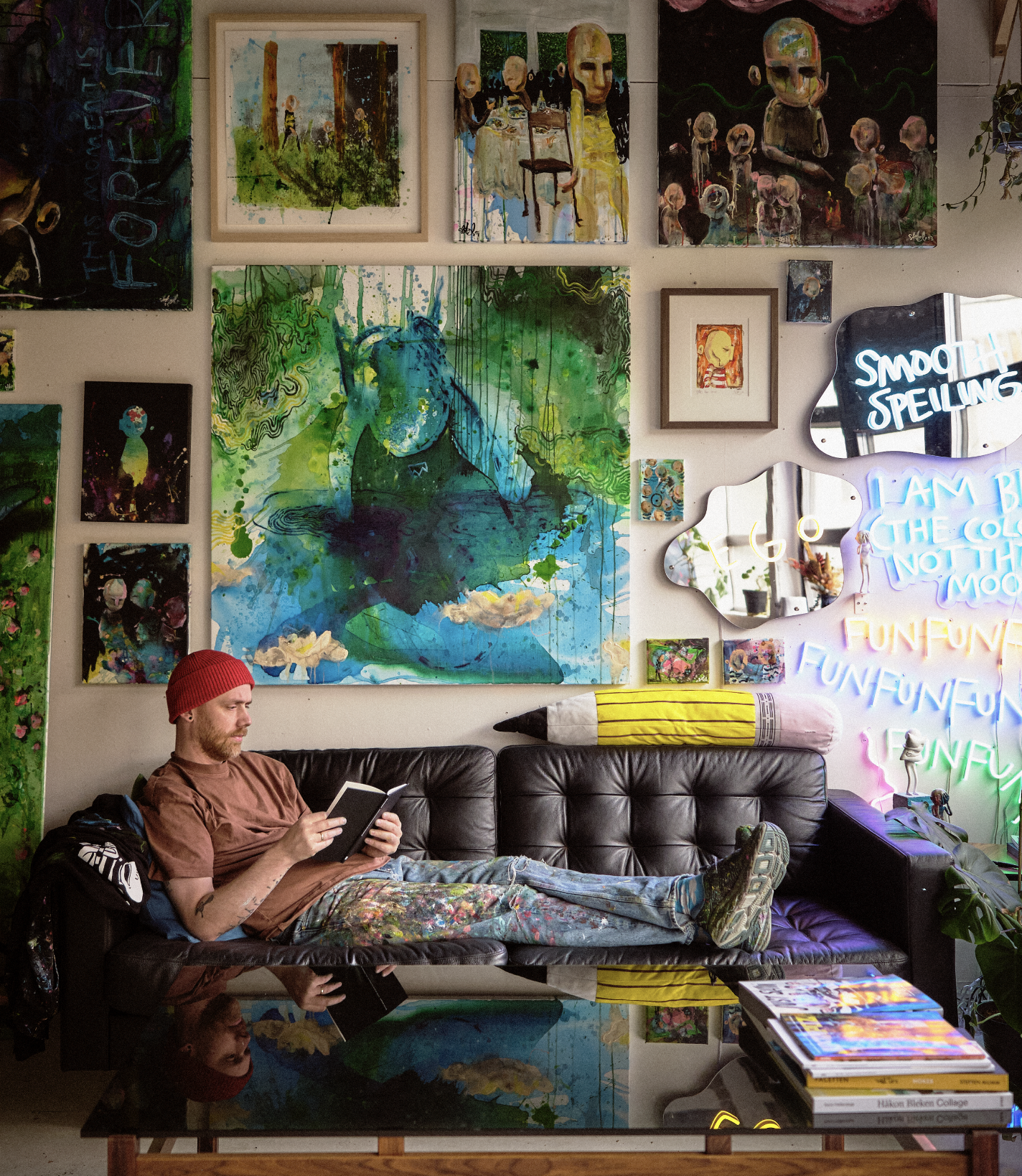 One fine day he quit his dream job to follow the dream of devoting himself completely to art. Ståle has been doing art since he was a teenager. Both with spray cans on the wall and pencil on paper. When he was 17, he was an exchange student in Barcelona where he really got a foothold for what art could be. In addition to standing in the studio at Can Serrat painting all day, he fell head over heels for Picasso and Dali and the way they broke rules and norms to be able to do their own thing, and has since always drawn on everything. ✏️