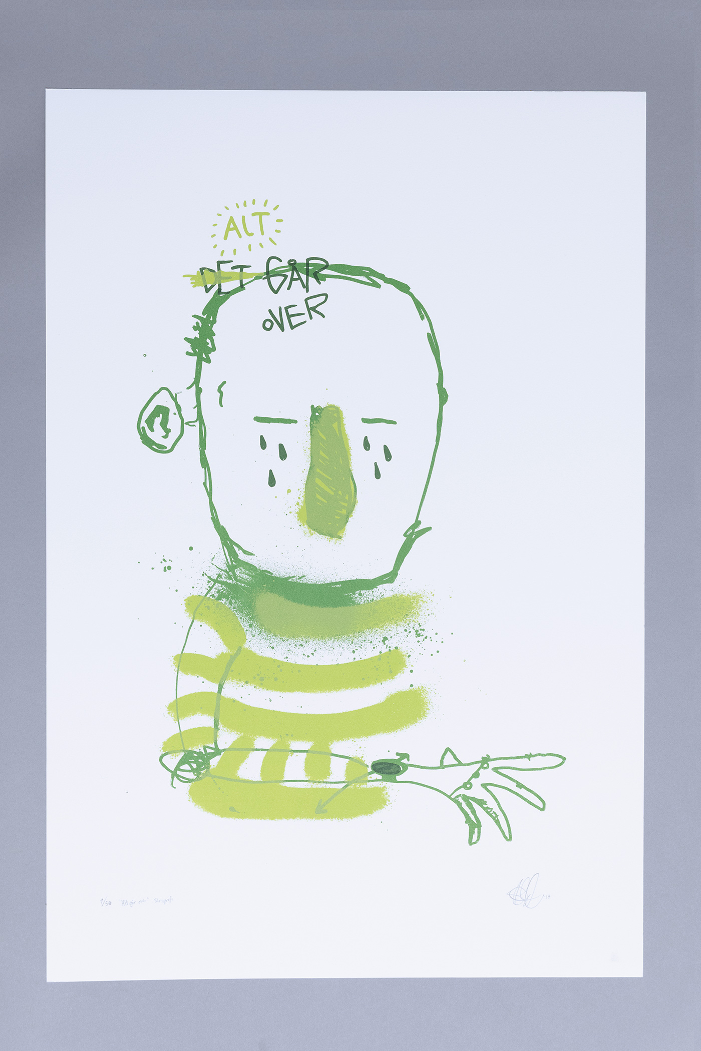 Det var silketrykkene. Dere aner ikke hvor mange timer det tok å blande de grønntonene. Det var supergøy å leke med grønne farger, men damn det var omfattende. Uansett. Disse tre røverne får du kun forhåndskjøpt hos Galleri Geo og Galleri Kollekt. De er trykket opp i 50 ex og kommer til å se bjutifulle ut i en eikeramme.