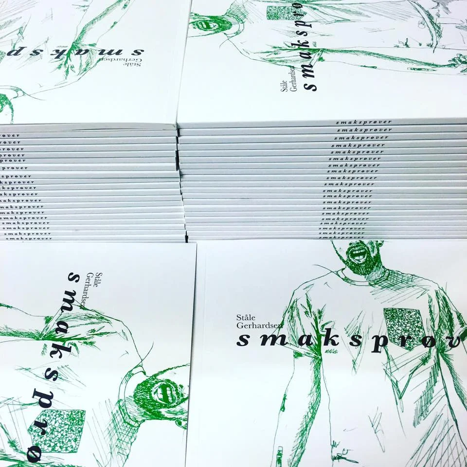 Jeg har lenge hatt lyst til å gi ut bok. Lenge. Typ tjue år. Jeg har skrevet barnebøker som ligger og støver ned i diverse skoesker i kjelleren. Jeg har lekt med tekster, laget fanziner, artikler, halve bøker, tanketog og nå blogg. Jeg har til og med skrevet en bok som jeg ga ut selv etter fem avslagsbrev fra fem ulike forlag. Vil de ikke leke, så leker jeg selv. Det er liksom mantraet. Det værste jeg vet er å være avhengig av noen. Jeg elsker å leke med, pønske ut og samarbeide med folk, men det å vare avhengig av at en eller annen Cæsar tar tommelen opp eller ned når jeg står der i gladiatoruniformen er ikke kult. Om Cæsar vil komme ned i ringen å sloss sammen meg så snakker vi. Sammen is awesome forever. Men jeg hadde ikke tålmodighet til å vente på noens tommelfingervegring. Derfor trykket jeg opp boken "Smaksprøver" til utstillingen min "Absolute Music 9" tidligere i år. (Smaksprøver får du foreløpig kjøpt på Galleri SG og Seams i Trondheim, og sikkert andre steder helt plutselig)